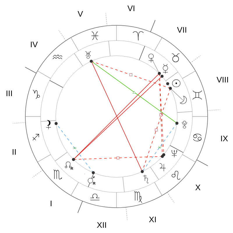 Куспид девятого дома и планеты внутри него описывают, как именно человек ищет смысл и расширяет картину мира. На куспиде Стрельца поиск становится авантюрой: такой человек движется интуитивно, от одного открытия к другому, и верит, что путь сам приведёт куда нужно. На куспиде Козерога, как у Харрисона, этот поиск приобретает структуру: знание накапливается методично, практика становится долгосрочным проектом. На куспиде Близнецов, как у Иоанна Павла II, философия выражается через слово — через тексты, проповеди, диалог.