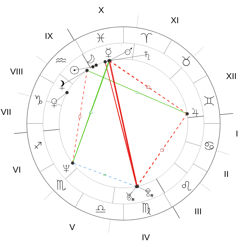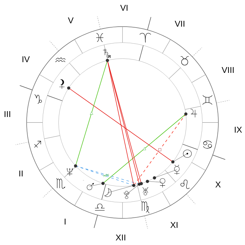 Дж. К. Роулинг родилась 31 июля 1965 года в Йейте, Глостершир. В её натальной карте Юпитер стоит при 22° Близнецов. Это классическое положение для человека, чей рост и успех связаны со словом: написанным, рассказанным, придуманным. Близнецы — знак коммуникации, идей и многообразия связей. Юпитер здесь расширяет именно эти качества.