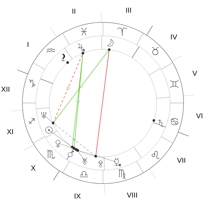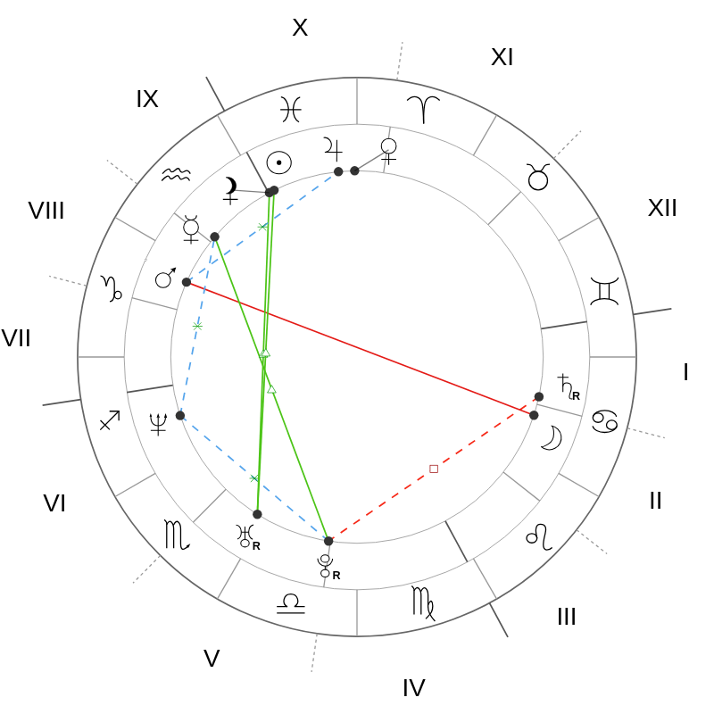 Дрю Бэрримор родилась 22 февраля 1975 года в Калвер-Сити, Калифорния. Юпитер в её карте стоит при 24° Рыб. Её история — это несколько смертей и рождений в одной жизни, несколько точек, из которых другой человек мог бы не вернуться. Рыбы умеют тонуть — но этот же знак связан с воскресением: с возможностью начать снова, совсем сначала, без груза предыдущих версий себя.