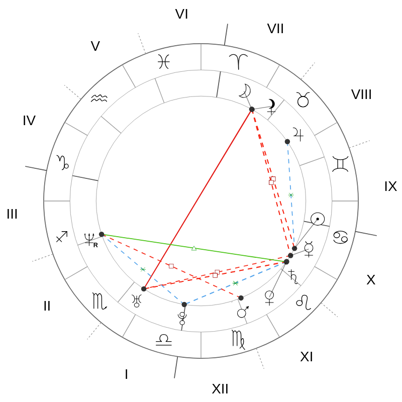 Марион Котийяр родилась 30 сентября 1975 года в Париже. Венера в её карте стоит при 28° Льва в двенадцатом доме. Весь её творческий путь складывается в историю полной отдачи: в роль Пиаф она вошла так глубоко, что изменила походку, голос, мимику. Для Венеры во Льве нет смысла делать что-то наполовину.